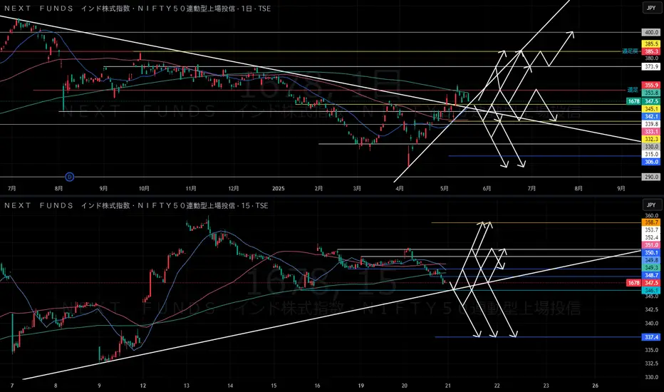 345ラインは日足において重要ラインなのだが、長期で波動を観測するとなると332.3ラインを試しにくる可能性も。