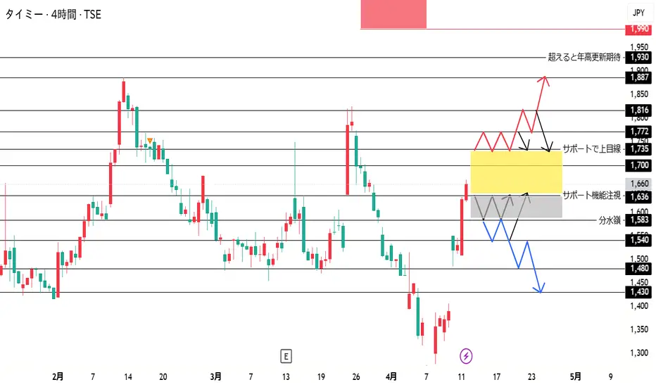 反対にゾーン下端がレジスタンスになれば下に動意すると予想
