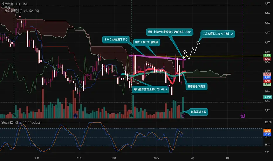 先ずは出来高を伴って陽線で上昇しているのに直近過去最高値を更新出来ていない^^;