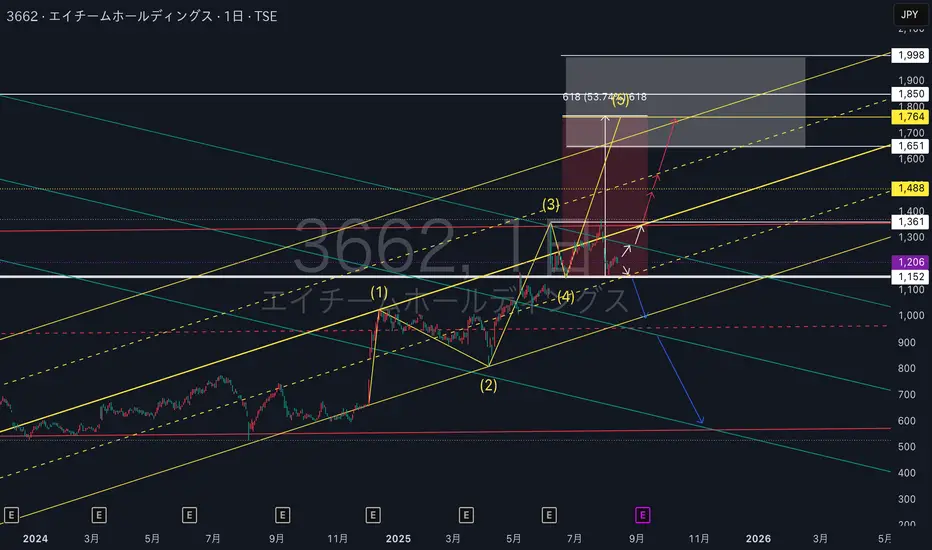 直近1361を実体で越えサポートされてくると1764付近まで