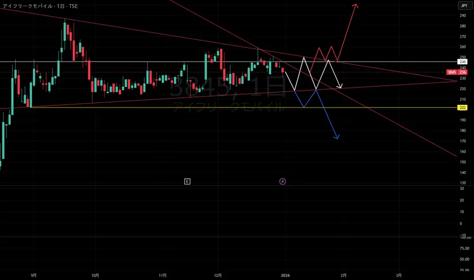このまま三角持ち合い抜けて上に抜けてくパターンと、下に抜けたらどこまでなのかな~なんだけども246円ラインを超えていけずに調整するなら130-150円も可能性としてはあるかも?