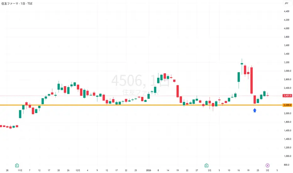 2025年11月頃から何度も天井か?と思われつつも高値を更新してきた住友ファーマ