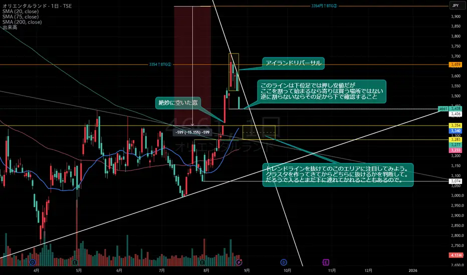 過去の買い方の売りがちと厚いゾーンになってきてるから、3354円下にある反対勢力を味方にできれば、かな?