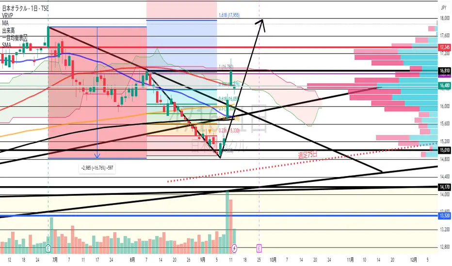 日本オラクルの決算もよければ直近高値更新の18000円が決算翌日のターゲット