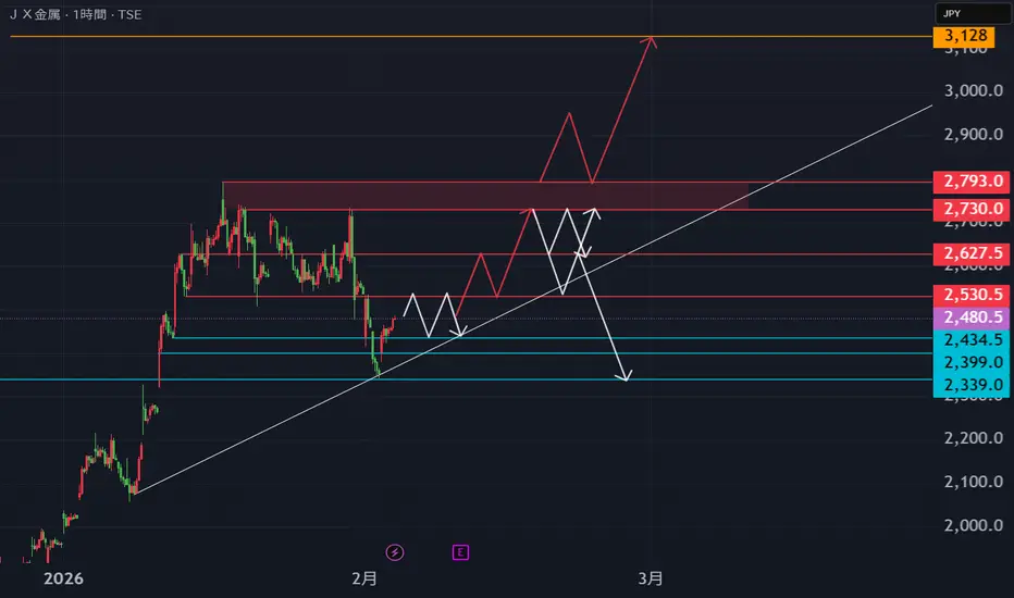 5016 JX金属 1時間足分析 2月4日以降