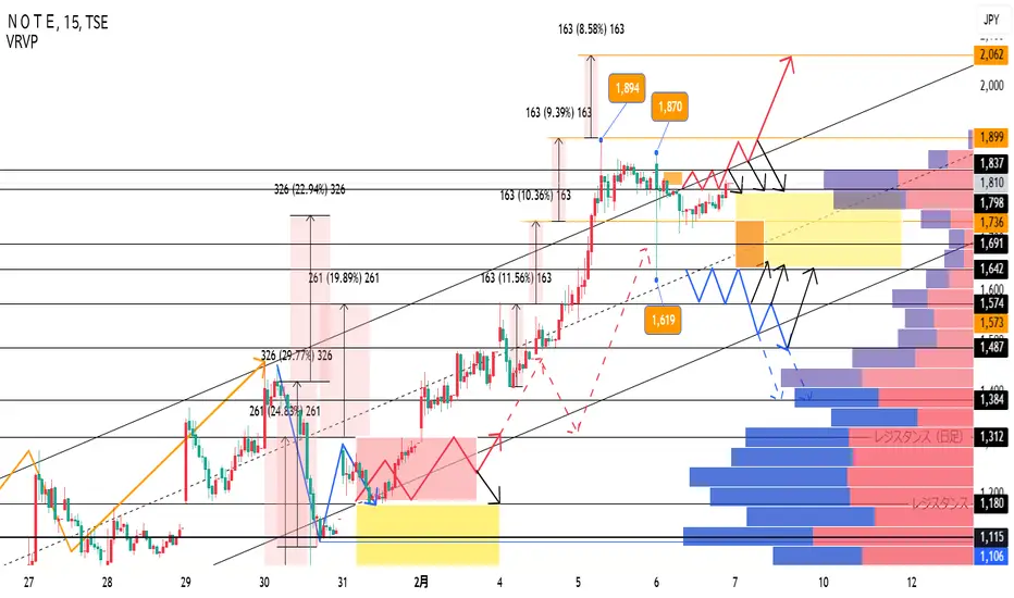 上記の条件を鑑みると1894-1619のBOX推移を形成する可能性が示唆されていると想定