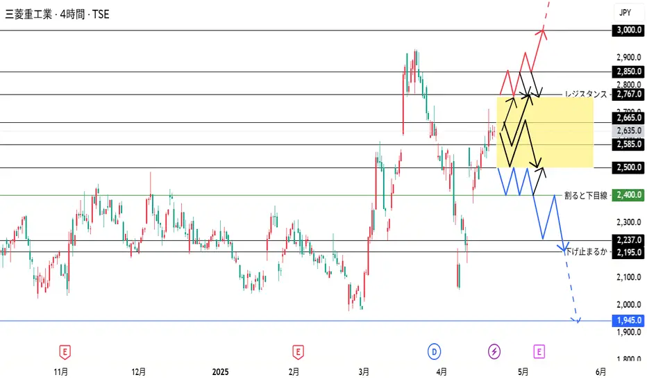 黄色ゾーン下抜けすれば反発ラインで下げ止まるかプライスアクションに注視のフェーズと予想
