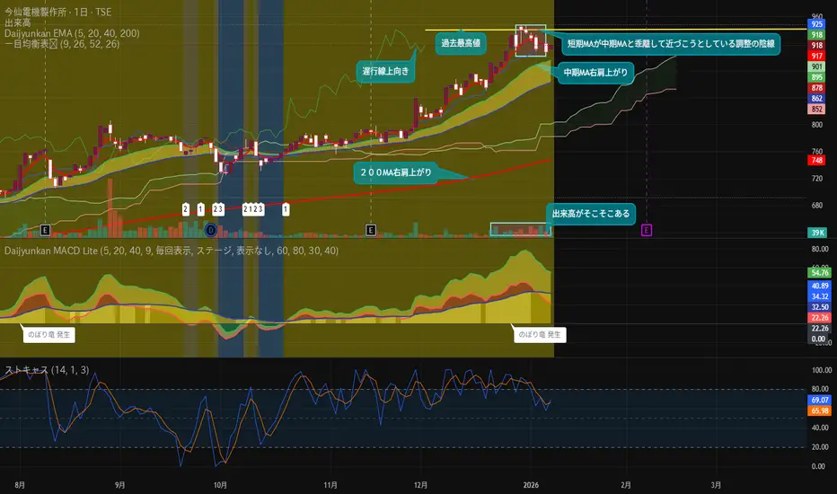 手前の上昇陽線も調整の陰線も出来高を伴っているので今日か明日からまた出来高を伴った陽線で上昇してくると思います!後は直近過去最高値を更新出来たら新たに上昇トレンドのスタートです^^v
