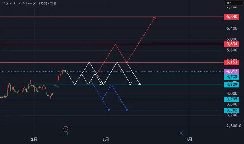 9984 ソフトバンクグループ 1時間足分析 2月13日以降