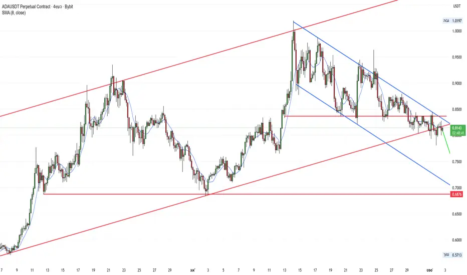 המחיר פרץ את קו התעלה היורדת ונתמך עליו אבל נוצר דשדוש שהתקרה 0.84 והתחתית 0.8