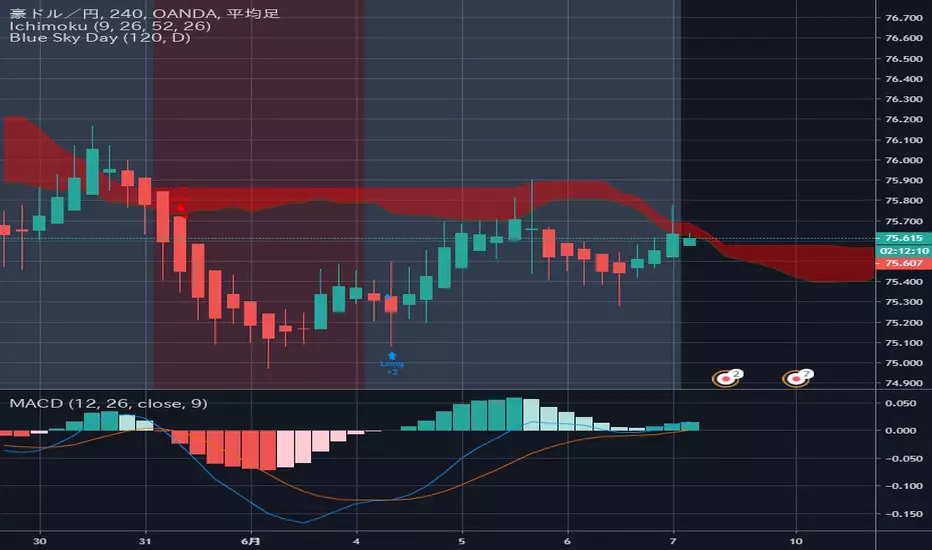 豪ドル円 75.67 上昇 (4時間足)↑