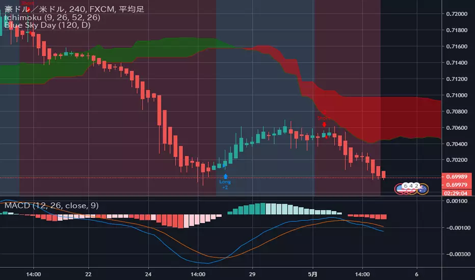 豪ドルドル 0.6998 下落 (4時間足)↓