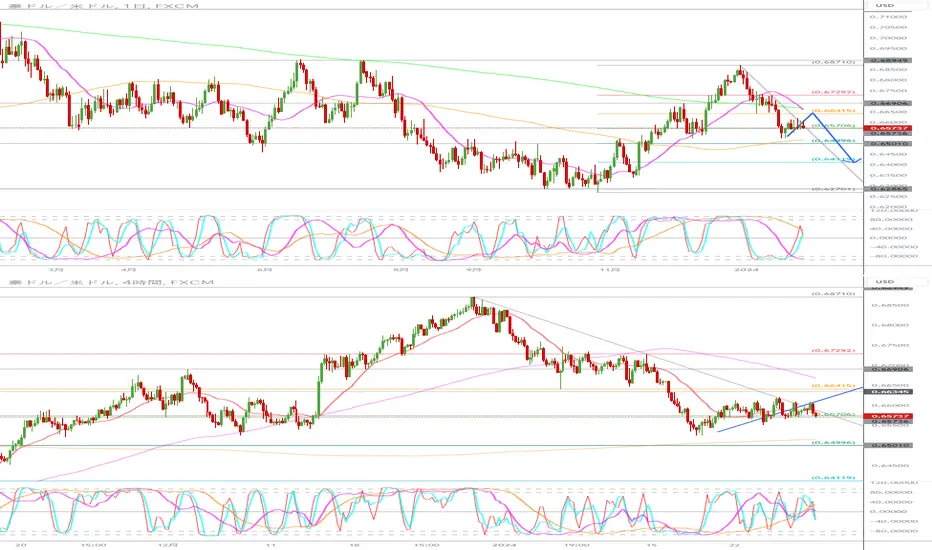 半値戻しのラインを割り込み0.6525でサポートされて反発するも勢いは弱く、安値圏でのもみ合いが続いている