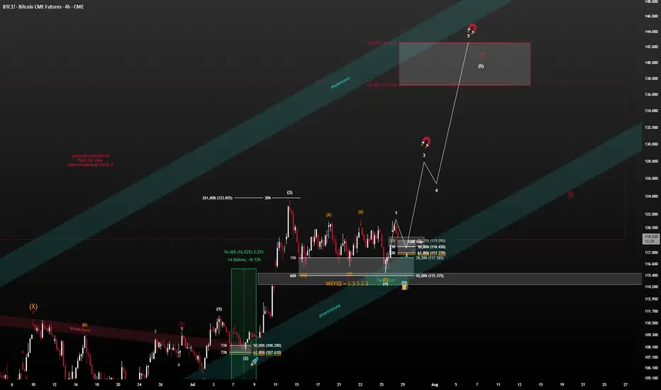 EW: 4H Bitcoin CME Future-Finale türkise Welle 5 am laufen! W3/5