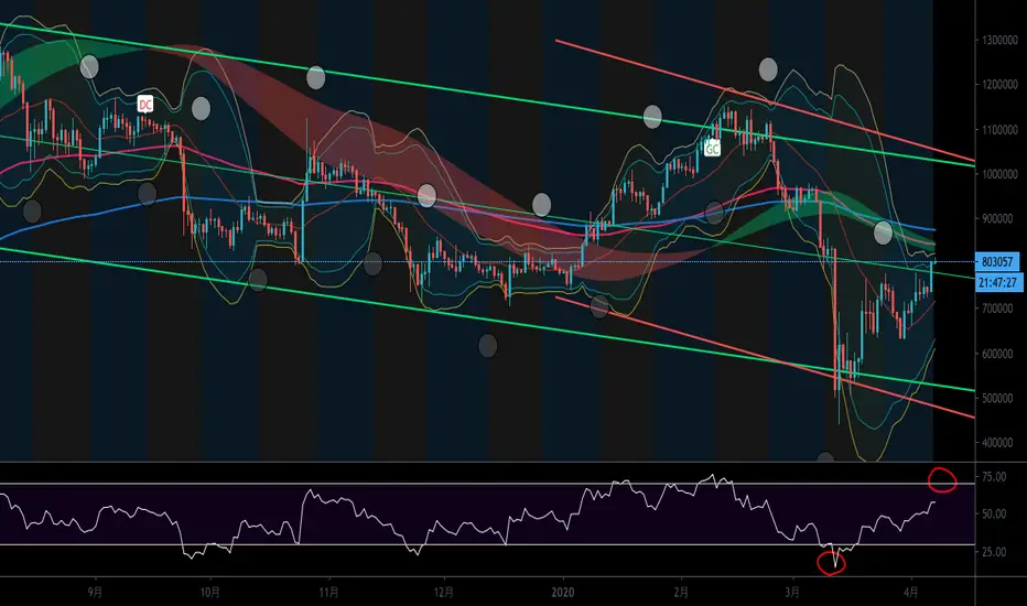 暴落でRSIを30下回ったあと、そのロングの利確はまだされていないように思います。