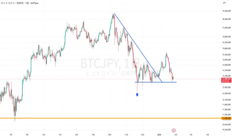 さらに、その価格帯でも反発が見られなければ、最大で1,100万円付近までの急落も想定しておきたいところ