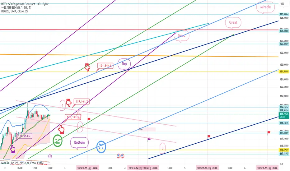 2. 119,161.2ドル ロングポジション 1次ターゲット -> TopからMiracleまで順番にターゲットが