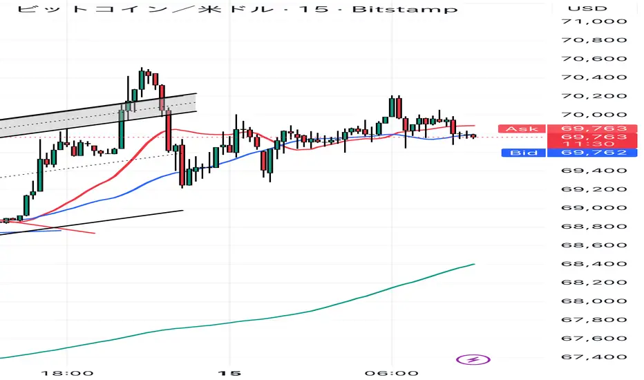 長期MAの上に短期MAが存在しているので、目線はロングです。今は、乖離した短期と長期のMAが収縮している時期になるので、今後の動きを見て判断していくべきかと思います。