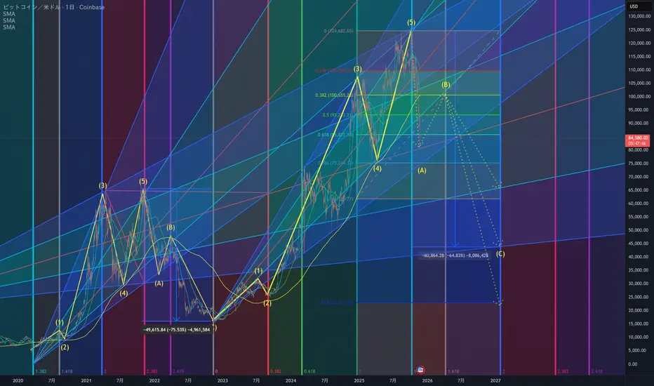 その後、2021年11月からの下落形式を今回も踏襲するなら、タイムゾーン1.382から1.618内で修正A波からB波までを形成することで、2026年春ごろまでは上昇基調が続くだろう。