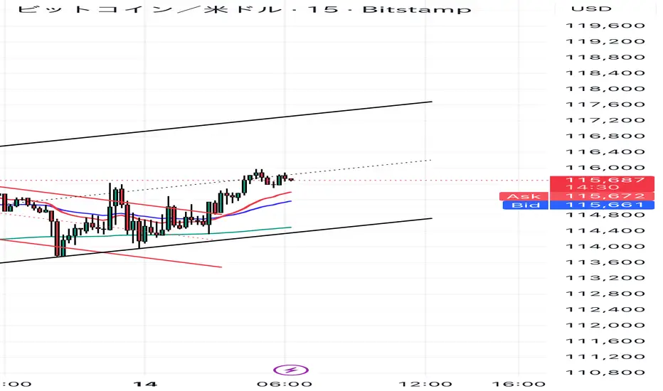 昨夜、レッドの切り下げチャネルを上抜け、上昇しています。ということで、目線はロング。