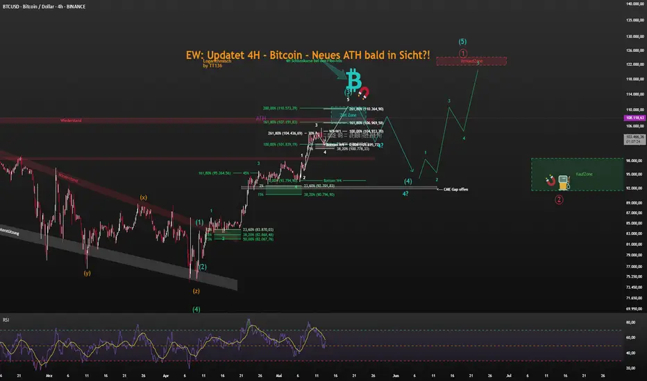 Diese Zählung und der Zielbereich sehen viel Besser aus.Befinden uns im Target Bereich aus dem Weekly-Chart bei ~111k - ~114k