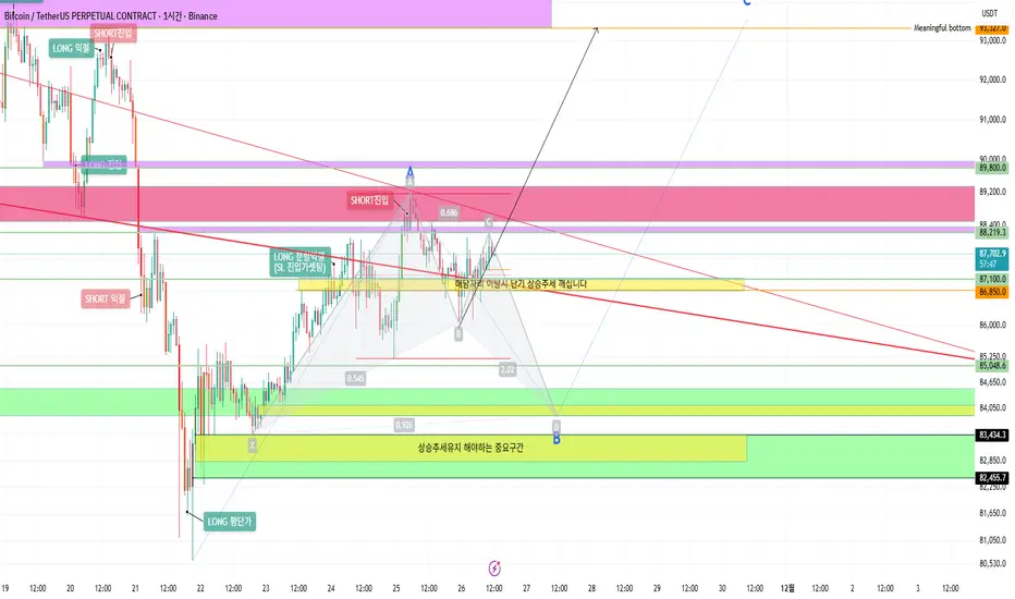 하모닉 패턴 + 1.272 버터플라이 + 0.886 + 하락채널 상단 리테스트