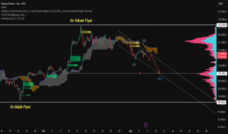 Hem Ichimoku hem de Hacim Profili, satış baskısının sürdüğünü doğruluyor. Yakın hedef TP bölgesi ~107.5K.