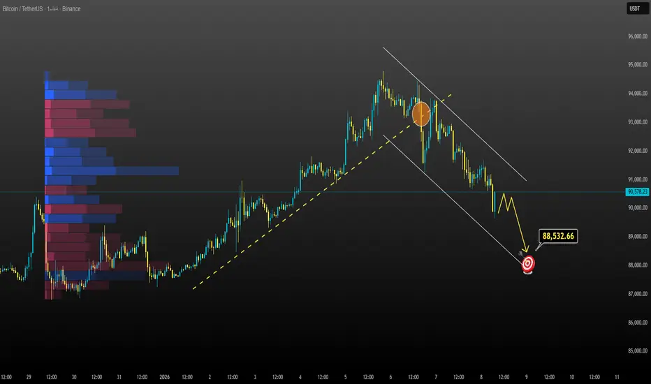 كسر البيتكوين خط الاتجاه الصاعد، متحولًا إلى نمط انحداري حاد. يتحرك السعر حاليًا ضمن قناة هابطة، مع ضغط بيع قوي عند كل صعود نحو مستوى المقاومة، مما يشير إلى ميل الاتجاه قصير المدى نحو مزيد من الانخفاض.