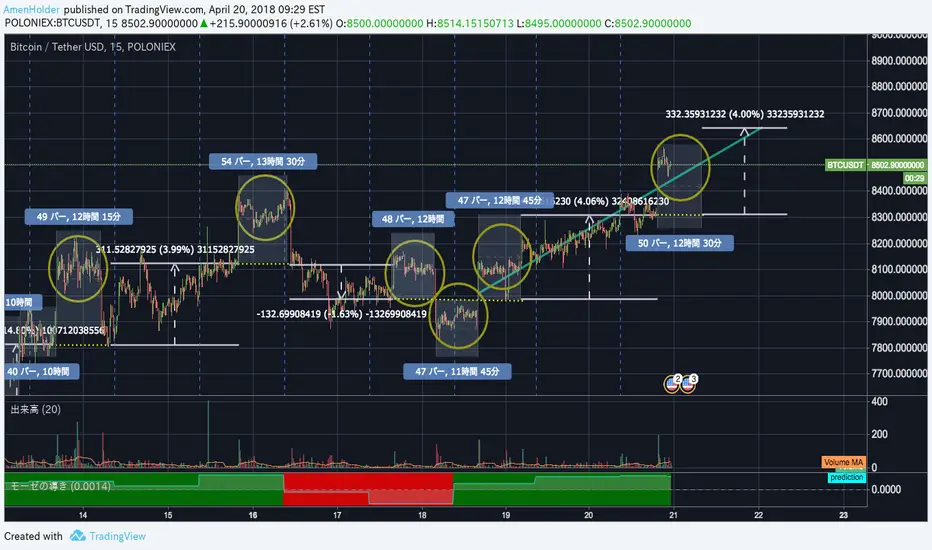 →4/21/8AMまでにベア側に押され8300ドル以下に落ち込めばベア側の1勝、8450ドル以上を保持できればブル側1勝のカウント判定