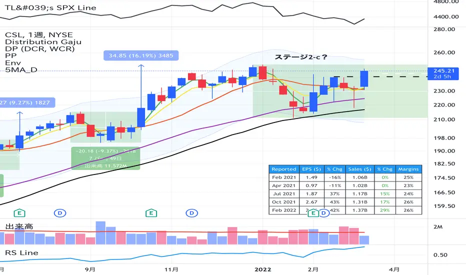 ステージ2-c?。買いポイント$242.77(範囲$254.90)。RSライン上向き。