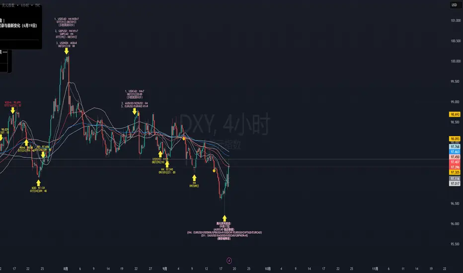 如图所示,在9月17日,我的信号系统在美元指数(DXY)相关的多个货币对上,罕见地出现了一次同步的、全线看涨的支撑信号。