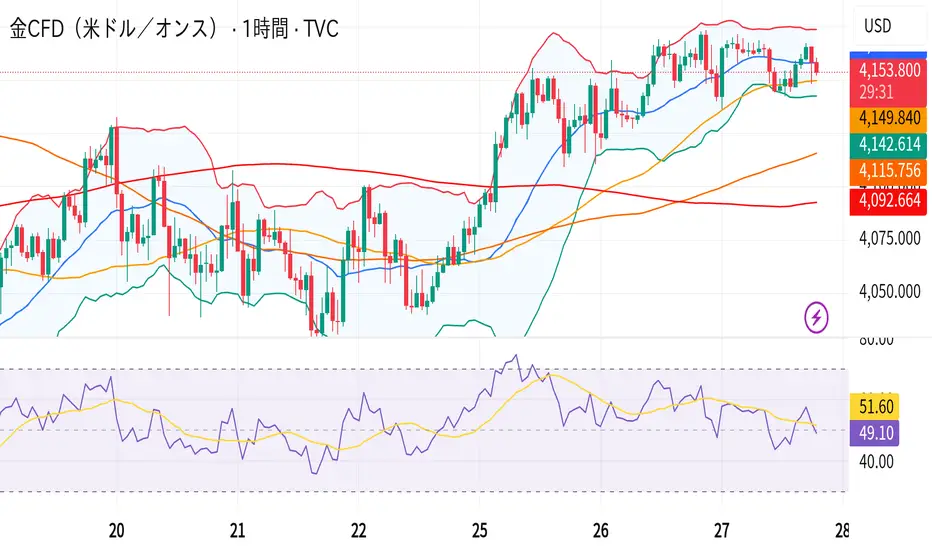 金は4150〜4165のレンジで小動きが続いています✨
