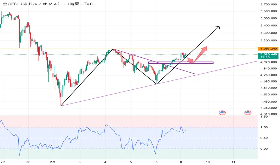 買い:4910~4930ゾーン、SL:4890、TP:5000~5050