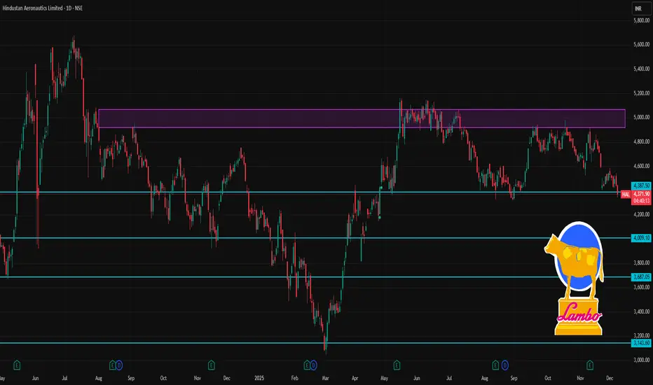 HAL stock trading around ~₹4,360-₹4,440 on NSE today (08-Dec-2025) depending on real-time movement during session.