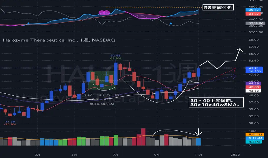 平均線が30>10>40wSMAの順番になっています。