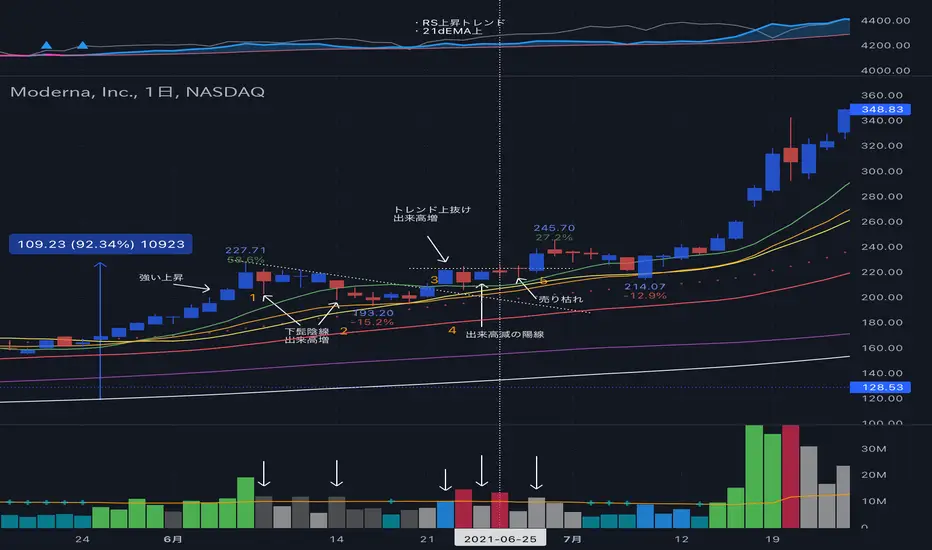 5.出来高減少後に、機関の買いが入る。(ここが正確な買いポイント?)