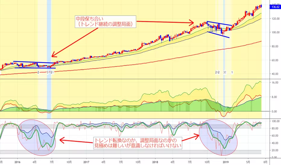 中段保ち合いのパターンを知ることや、そこでの大循環ストキャスをどう使うかなどなど。