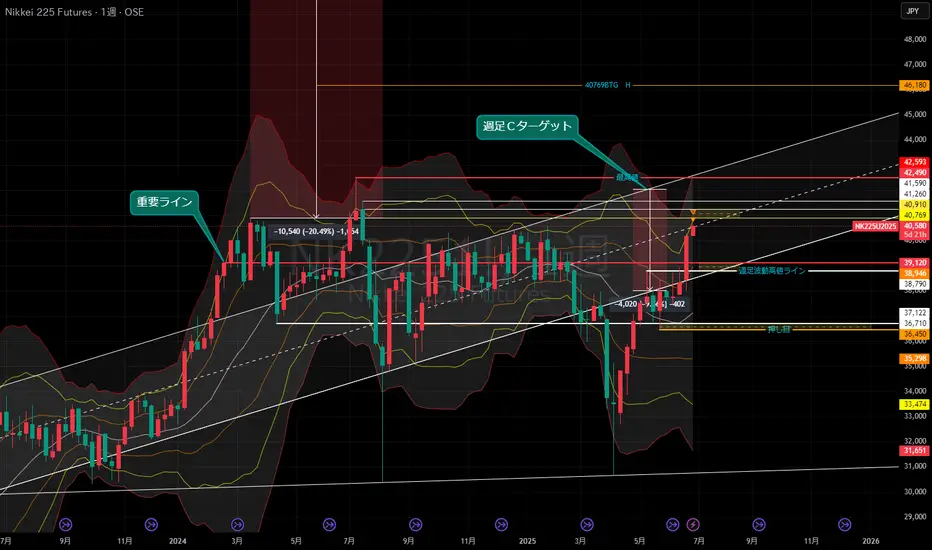 40910円までつけてからの押し目だととてもきれいな押し目になるのだけど、現状チャネルの上側にいらっしゃるだろうお団子のみなさまがどう反応してくるのやら(このチャネルが意味あるチャネルだったら)。