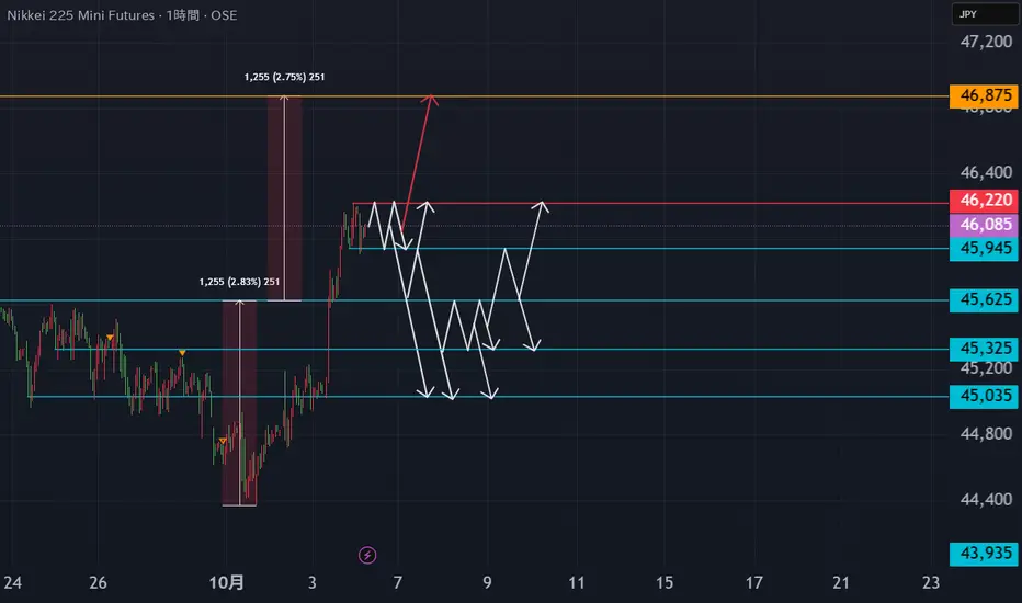 日経225先物ミニ 1時間足 10月6日以降