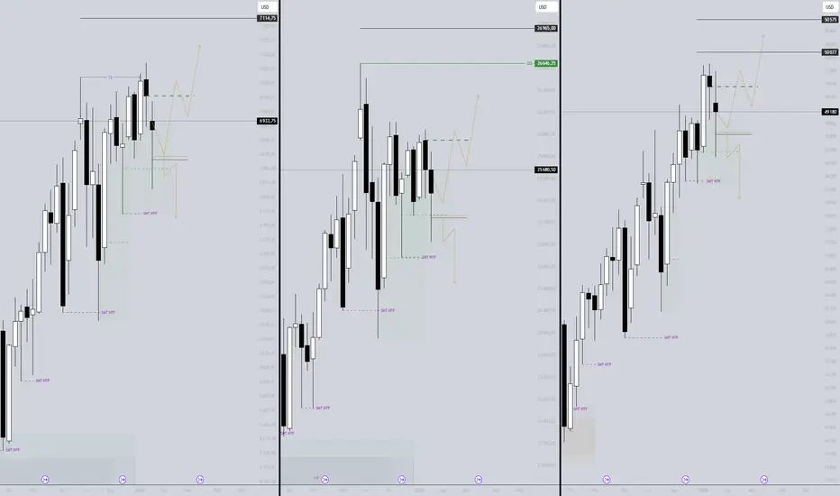 NQ - na ten moment wszystkie indeksy na styk utrzymały ostatnie miejsca dla longa, ale jak widać, ciągle tylko budujemy LIQ jeszcze. Żeby cena pokazała siłę, potrzebujemy zobaczyć stanowcze wyjścia nad gapy i najbliższe POI spadkowe, wtedy drzwi w górę nam się otworzą, więc dlatego czekam z większymi planami kierując się lokalnie od deski do deski.