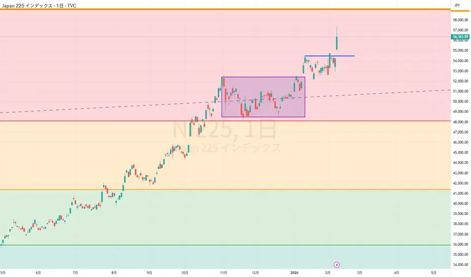 続伸すれば、6万も視野に入ってくるが急伸した反動で、一旦直近の保ち合い上限である 54,500円付近までのサポートラインを確認する調整が入る可能性もある