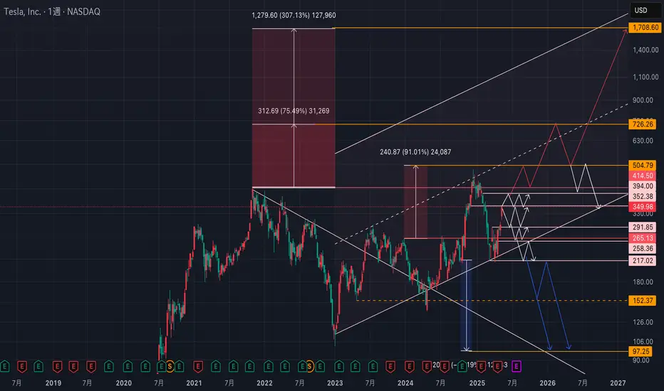 その後、414.50がサポートに変われば726.26(最大1708.60)がTGになります。