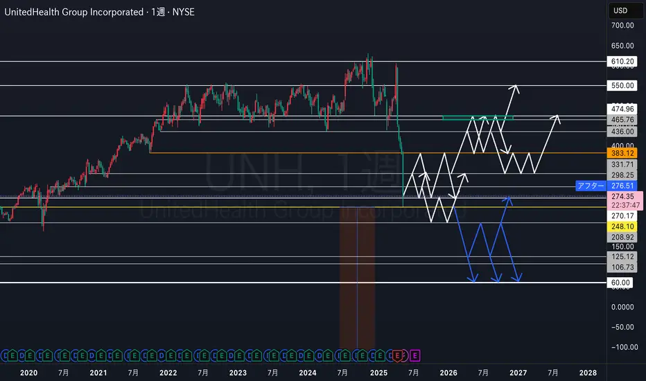 現在、意識されている248.10で下げ止まりを見せている状況ですが、ここを割ってきて208.92付近がレジスタンスとなってくる展開になると60付近に向かって下降していくイメージです。