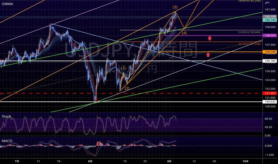 これが4波になって、最終は142円くらいを目指して上昇…というイメージですね。