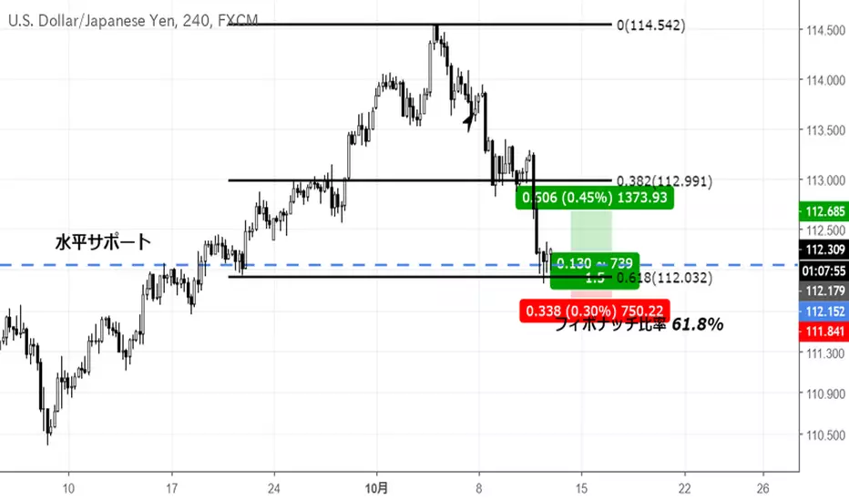 水平ライン、フィボナッチ比率0.618のサポートの可能性が思われます。