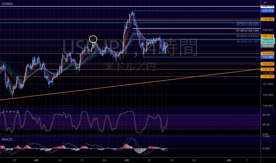 4時間足はGMMA付近です。