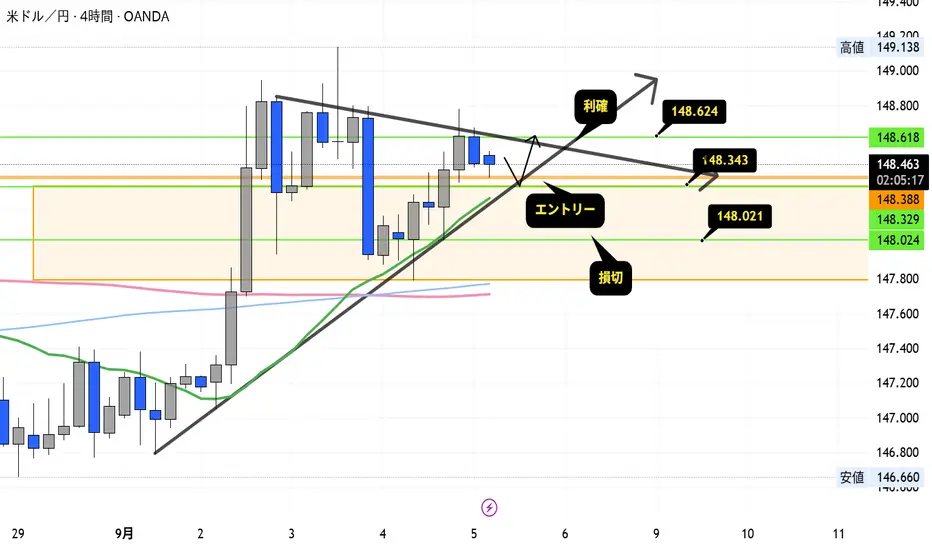 エントリー:148.343付近でロング