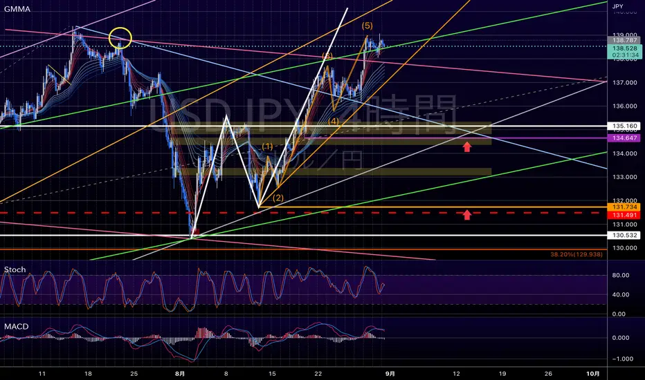 ただ、オレンジのエリオット波動をイメージしてますが、今は5波進行中ですので、ここから上昇しても上値は限定的だとも考えます。
