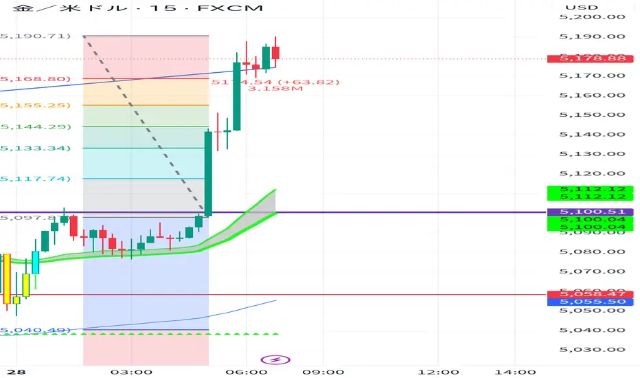 利確値 (TP1) 5,190 直近のヒゲ先(最高値付近)。ここでの反応は一旦強くなるはず