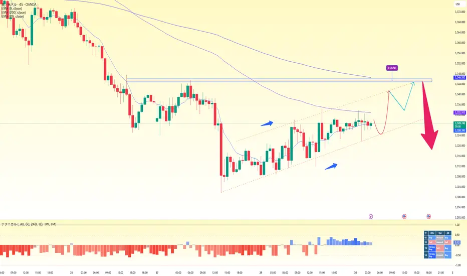 ⚠️FEDが金利を据え置いた結果はほぼ確実、金価格は累積で3300付近に下落